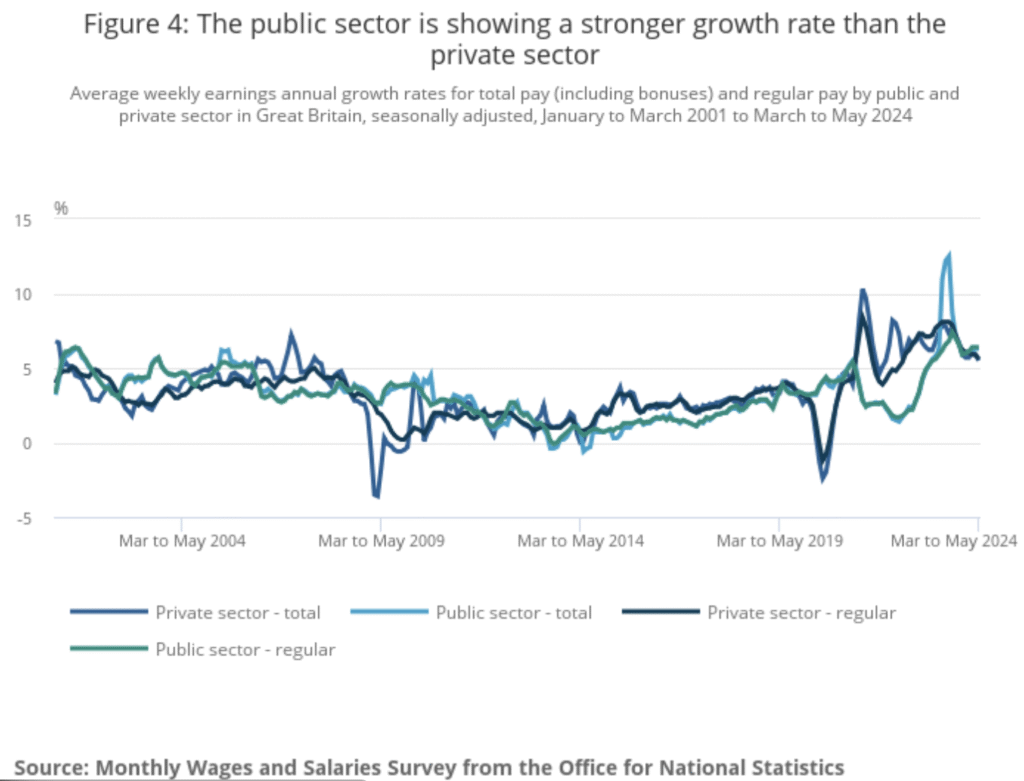The UK’s current wage dynamics are occurring against a backdrop of declining productivity, particularly in the public sector. An analysis by EY in August 2025 estimates that the growing productivity gap between the public and private sectors is costing the economy around £80 billion annually. Since 2019, private sector productivity has risen by more than 3%, while public sector output remains nearly 5% below its pre-pandemic peak. Other reports suggest an even steeper decline: a 2024 study indicated public sector productivity was 6.4% below its Q4 2019 level.